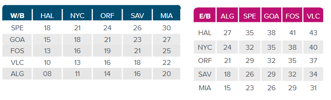 ● Original Rotation: Salerno – La Spezia – Genoa – Valencia – Algeciras – Halifax- New